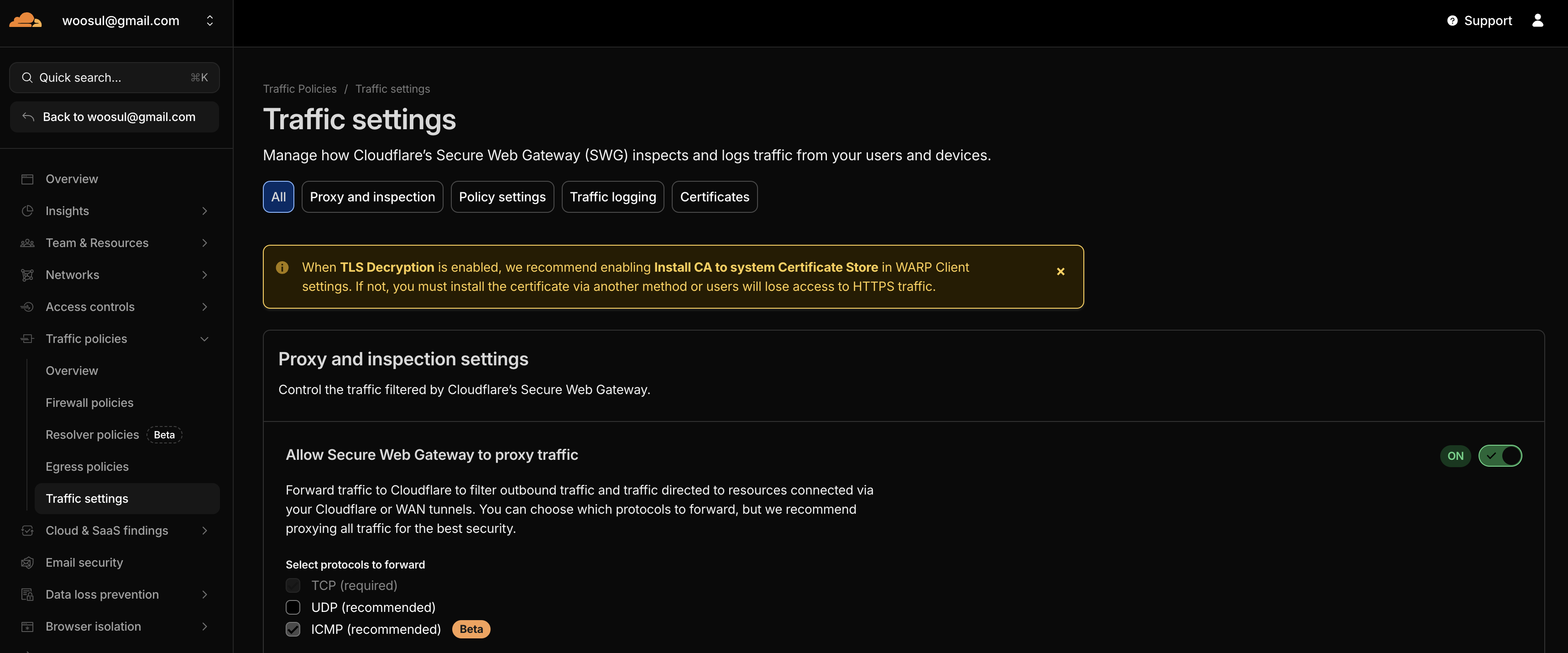 → Settings → Gateway → DNS locations